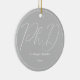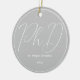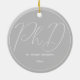 Ein Ornament für einen Doktorand mit einem grau-weißen Farbschema. Es zeigt den Grad, den Namen und das Jahr. Einfach anpassen Sie dieses Ornament, fügen Sie es in Ihren Warenkorb, und haben Sie einen Vorzug dieser großen Leistung. Grauer Minimalistischer Name PhD Abschluss Keramik Ornament Holidadays Design | ©Melissa Patton - Designer