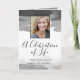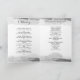 Modernes gefaltetes Begräbnis- Programm in der Holzkohle, im blassen Grau und im Weiß, mit einem hübschen Kalligraphieskript. Auf der Abdeckung, einem Foto von Ihrem geliebten zusammen mit ihrem Namen und Jahren Leben. Innerhalb Sie kann das Nekrolog und das Programm schreiben. Auf der Rückseite können Sie Bestätigungen addieren.