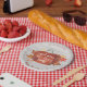 Graue Papierplatte aus grauem Erntedank mit fettfreien Pants
