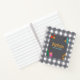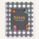 Niedliches Retro-Grau-Weiß-Kariertes Muster-Personalisiert-Notebook mit farbigen Schulmaterialien in der Mitte für Ihren eigenen Text. Bitte passen Sie alle verfügbaren Optionen nach Ihren Wünschen an.