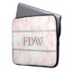 Fertigen Sie diese Laptophülse mit dem Monogramm der Empfängers auf diesem Imitatrosa Marmorhintergrund besonders an. Zwei graue Linien sind über und unter den Initialen.