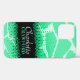 Helles Tier gemustert iPhone Gehäuse in Minze grün und Jet schwarz. Personalisieren Sie dieses Objekt mit Ihrem vollen Namen. Dieses Beispiel lautet derzeit: Charlotte Crawford. Dieses originale Muster von Sarah Trett basiert auf dem Muster einer Giraffe mit einem halbmondförmigen Punktegewinn-Overlay.