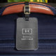 Personalisieren Sie dieses Gepäckanhänger mit Ihrem Monogramm und Namen. Hintergrund ist ein grau gebürstetes Metall. Monogramm Name auf der Vorderseite und Adresse und Telefonnummer auf der Rückseite. Stilvolle Gepäckmarke für Männer. Entworfen für Sie von BlackBerry Boulevard.