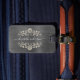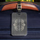Ein edles metallisches silbergraues, gebürstetes Metall Gepäckanhänger. Das Gepäckanhänger hat ein Monogramm mit einem silbergrauen Hintergrund. Fügen Sie Ihre Adresse auf der Rückseite des Gepäckanhängers hinzu. Entworfen für Sie von BlackBerry Boulevard.