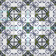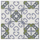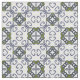Ein handgemaltes graues und grünes Blumendamastmuster inspiriert durch alte spanische Fliesen