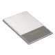 Ein modernes Notizbuch mit minimalem individuelle Name mit einem schicken grauen Block. Personalisieren Sie mit Ihrem Namen oder Ihrer Info oder löschen, um als schöne Farbblock verlassen.