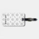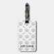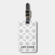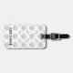 Ein Muster aus Hündchen und Knochen. Gepäckanhänger in weiß und grau. Ändern des Namens, um ihn anzupassen. Design im Cartoon. Geschenkidee für Hundefreunde.