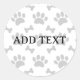Ein Muster aus Hündchen und Knochen. Maßgeschneiderte Aufkleber in weiß und grau. Text bearbeiten, um ihn anzupassen. Design im Cartoon. Geschenkidee für Hundefreunde.