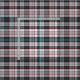 Grauer Tartan kariert mit dünnen roten und blauen Streifen.