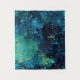 Ein grunges Mischmediendesign in einer türkisfarbenen und gelben Farbpalette auf dunklem Hintergrund.