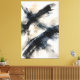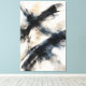 A commanding large-scale abstract defined by decisive, gestural brushwork that arcs across the surface with quiet authority. Layered ink washes pool and dissolve beneath the paint, creating controlled depth and a sense of atmospheric movement. The surface reads as tactile yet refined, evoking heavyweight archival paper rendered at high resolution. A restrained palette of warm bone, deep charcoal, and muted slate blue balances strength with restraint, giving the composition a grounded, contemporary presence suited for statement interiors and gallery-scale presentation.