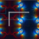 Eine mehrfarbige, Fraktal-Darstellung des gravitativen Blueshifting; die Lichtverschiebung zum blauen Ende des Spektrums, das auftritt, wenn Fotonen energischer werden, wenn sie in einen Gravitations-Brunnen fallen. Anders als das bekanntere Doppler Blueshift, ein scheinbarer Effekt, der das Ergebnis der Bewegung zum Beobachter ist, ist Gravitationsblauen real, unabhängig vom empfangenen Winkel des Fotons. Die Gravitationsblauen sind eine natürliche Folge der Energieeinsparung und der Gleichwertigkeit von Massenenergie.
