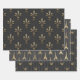 Vintages Pariser Graupapier und Goldpapier in drei verschiedenen Stilen, darunter Lilie, Eiffelturm und Kronmuster.