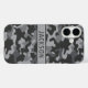 Customize this gray camouflage iPhone 16 case with your name in a trendy modern CAP font in dark gray on light gray. It's masculine and perfect for your favorite military, hunting, country or outdoorsman!