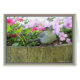 Leere Karte: Ein grauer Katvogel in Blume Fass.
