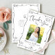 Make sure your favorite grad shows appreciation to all who supported their milestone event! Send out this quirky, playful, simple, modern, personalized photo thank you card. On the front, fun soft gray handwritten script typography and hand drawn graduation icon sketch doodles, along with your custom photo, overlay a minimal white background. Add the photo of your choice and personalize the custom text with your grad’s name, and class year. On the back, type in your custom message or delete the copy altogether so you can write your own handwritten note. Matching invites, address labels, banners, stickers, hand fans and other graduation goodies are also available in this trendy and stylish collection. Guaranteed to add a stylish touch to their correspondence!