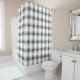 Dieser Duschvorhang hat ein modernes Design aus massiven grauen Diamanten in grauen Diamantschichten auf einem weißen Feld.