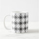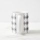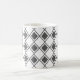 Diese Tasse hat ein modernes Design von soliden grauen Diamanten in grauen Diamanten Konturen auf einem Feld von Weiß.