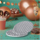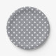Graue Teller mit weißen Polka-Punkten ergänzen die Tischdekoration im Party. Illustriert und entworfen von Patricia Alvarez.
