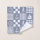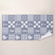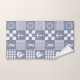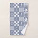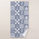 Graues Patchwork Muster Badetuch Set mit geometrischen Karos und Streifen sowie Seepferde, Segelboote, Anker und Schiffskräfte.