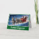 Ein Team grauer Tabbys mit Antlers zieht den Weihnachtsmann und seinen Schlitten in den Himmel,