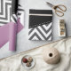 Elegantes, stilvolles und raffiniertes Zickzackmuster (Zickzack) in Grautönen und Weiß mit lila und schwarzen Farbtupfern. Modernes und trendiges Geschenk, perfekt für den Zickzack Liebhaber in Ihrem Leben.