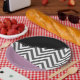 Gray Zigzag, grau Zickzack, Zigzag Muster, Lila Pappteller