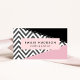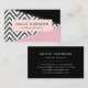 Elegante, stilvolle und raffinierte Visitenkarten mit Zickzackmuster (Zickzack) in Grautönen und Weiß mit rosa und schwarzen Farbflecken. Modernes Design, perfekt für Zickzackliebhaber.
