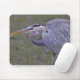 Der große blaue Held, auf dem Originalfoto von ZoeSPEAK auf diesem Mauspad, zeigt seinen Absturz, sieht ein bisschen wie ein Stachelschwein aus, flattert seine Federn, um sich größer zu machen, um einem anderen Vogel zu sagen, dass es sein Territorium ist. Im Foto sehen wir den Vogel im Profil, seine graublaue Färbung endet in einem weißen Kopf mit tiefblauen Bändern auf beiden Seiten. Sein langer gelber Schnabel zeigt gerade nach vorn, während er mit seinem langen, gekrümmten Hals an seinem Körper festsitzt. Der Hintergrund von Gräsern ist in gedämpften Erdtönen mit durchweg grünen Teilen.