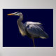 Dieses Poster der Kunstfotografie zeigt den Großen Blauen Heron, einen großen Wattenvogel in der Heronfamilie Ardeidae, der in der Nähe des offenen Wassers und in Feuchtgebieten verbreitet ist. Er ist der größte nordamerikanische Held. Zu den bemerkenswerten Merkmalen zählen Latschfedern, rot-braune Oberschenkel und ein paarweise rot-brauner und schwarzer Streifen auf den Flanken; der Hals ist rostig grau, schwarz-weiß streut die Vorderseite ab; der Kopf ist blasser, mit fast weißem Gesicht, und ein Paar schwarzer Schwaden, die von knapp über dem Auge bis zum Hinterkopf laufen. Die Federn am unteren Hals sind lang und plume-ähnlich. Da dies die Brutzeit ist, hat er auch Trachten auf dem unteren Rücken und eine orangefarbene Rechnung. Seine Federn werden durch das helle Sonnenlicht zurückbeleuchtet.