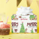Das wiederholte Muster dieses niedlichen Weihnachtsverpackungspapiers ist ein Bild eines wunderschönen Großen Dänen mit einer rot-weißen Weihnachtsmannmütze. Der Hund sitzt neben einem geschmückten Weihnachtsbaum unter hellen Geschenkpackungen. Ein Stiervogel landet auf dem Baum dahinter. Stilisierter, roter und schwarzer Büffel karierter Text sagt MERRY CHRISTMAS", und Ihre eigene Unterschrift ist in zwei Bereichen für Sie individuell.