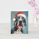 Farbenfrohe und fröhliche Weihnachtsgestaltung mit einem Great Dane in einer Weihnachtsmannmütze.
