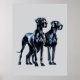 Eine stilisierte Abbildung zweier majestätischer Große Dänen stehend nebeneinander, die ihre schlanken, muskulösen Körper und ihre eleganten Eigenschaften zeigen. Die Hunde sind schwarz mit glänzenden, glänzenden Mäntel, die durch dramatische Schatten und Highlights verstärkt werden, um ihre ausgeprägten Physiken mit einem subtilen Aquarelleffekt zu unterstreichen, der eine künstlerische Touch verleiht.