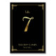 Great Gatsby Art Deco Hochzeitskarten mit goldener Nummer 7 und anpassbarer Tischnummer, wo Sie Ihre Namen und das Hochzeitsdatum hinzufügen können, auf schwarzem Hintergrund gedruckt