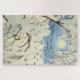 Great Tit by Norwegian artist Theodor Severin Kittelsen. Watercolor painting of a cute yellow parus major bird on a snowy tree branch in winter time while the sun is breaking through on a clear blue sky.