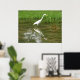 Das Poster-Design zeigt ein Foto einer Beute aus dem Großen Weißen Egret in einem kleinen Teich im Südosten Louisianas.