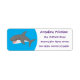A happy, hungry great white shark is swimming in the ocean. Drawn in cute cartoon illustration style on a blue background for a fun day!