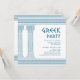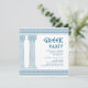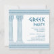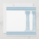 Greek retirement party invitation featuring minimalist temple pillars and a blue Greek meander pattern. Customizable product for a memorable celebration. Perfect for your Ancient Greece or Ancient Rome-themed party.