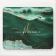 Green Agate Geode Gold Glitzer Script Monogram Mousepad