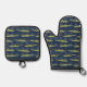Green Alligator Navy Blue Gemustert Ofenhandschuh & Topflappen-Set