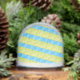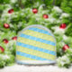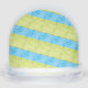 Symmetrical grid of crumpled paper textures in alternating greenish-yellow and light blue, creating a vibrant, tactile striped pattern with depth and visual rhythm