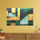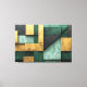Geometric abstract art with blocks in emerald green, mustard gold, and gray. Texture resembling concrete and stone. Modern and sophisticated design. Ideal for interior decoration, offices, and wall art. A balanced composition that brings elegance and visual structure to any environment.