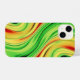 vibrant abstract design features flowing chrome waves in green, golden, and red, creatic a dynamic look.