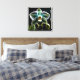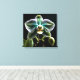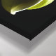 A close-up of a vibrant green and white orchid with speckled petals and dew drops.