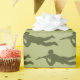Gemusterte Geschenkpackung, die Erwachsenen genauso viel Spaß macht wie Kindern, mit dem symbolträchtigen, grünen Armeemann aus Plastik, der auf koordiniertem grünem Hintergrund in der Pose der Scharfschützen sitzt