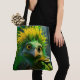 Dieser Totenbeutel hat einen coolen grünen Vogel darauf.