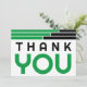 Schicken Sie diese Green & Black Bars Grad Party Dankeschön Card an Ihre Freunde und Familie. Es zeigt die Farben Grün und Schwarz der Schule, um Ihren Schulgeist zu zeigen.