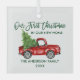 Modern Brush Script Unsere ersten Weihnachten in unserem neuen Zuhause Glass Ornament beinhaltet Watercolor Vintag Red Truck mit Christbaum - Forest Green Script