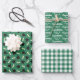 Wrap gifts for the graduate in different but matching wrapping papers, all with green as their base color. One with graduation caps and diplomas. One with Congratulations, class of the Year, and one with a printed gingham pattern.