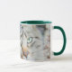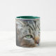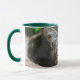 Jäger grün 11 oz Combo Tasse mit grünen Augen Katze, die Sie anschaut.